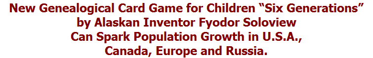 Alaskan inventor Fyodor Soloview discovered a simple way to increase fertility rates of future parents, now 5-12 year-old children, by pointing their interest to genealogy and saving their dynasty from extinction.