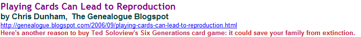 "You just let you children play Six Generations, and they will figure it out by themselves, what their own role in securing their family dynasty is," the inventor said. "There will be questions, of course, about the names of their great-grandparents. Even if you can't answer, your children will discover with a big surprise that their kin goes back thousands of years, and that each child is the last 'survivor' of that dynasty. If they never produce their own children, their whole family 'kingdom' will be destroyed. Saving their family from extinction will become their life-time mission from now on."