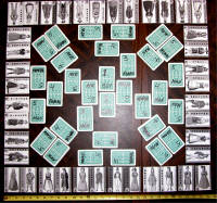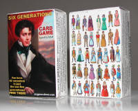 Each of the dolls, nested within each other, represented another generation of the Russian people. Each subsequently tinier doll therefore stood for the next younger… the tiniest representing the babies of this generation. It is from this tiny solid wooden doll that the set gets its name. The larger the set, the longer the lineage backward in time, the greater the family dynasty. His first endeavor was to research creating such dolls, with each subsequent generation in traditional dress for their era. Cost became a factor, because he was unsatisfied hiring low quality artists for such a project. The project languished as his business in Anchorage foundered, as Big Box retailers like Wal-Mart and Fred Meyer capitalized on low cost and wide product range, and put him out of the retail business. While considering the different ways in which he could move his genealogical doll idea into production, he stumbled upon the concept that would change his course, and put him into a toe to toe confrontation with standard card decks… The Six Generations deck of 64 cards. Each of the cards depicts a male or female dressed in garb consistent with their nationality, and each with a given name that reflects a common name from their era and nation of origin. Only four cards represent contemporary characters, Jacob and Emily, brother and sister, and their parents – Michael and Jennifer. These contemporary characters are ranked as 1 and 2, being the current generations, and the other cards bear rankings reflecting the four prior generations. In the original game, the oldest cards represent immigrants to the US… These rules are included in the game as printed, but a more updated and revised version of the rules is available from the company website, www.sixgenerations.com . April 13th, 2007