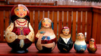 Evolution of designs of the board for the Six Generations card game. 2000 Gifts & Art, Soloview's store in the Dimond Center Mall, Anchorage, Alaska (1999-2004) Display with Matryoshka-dolls. Fyodor Soloview in the store, 2002. Traditional set of Russian Matryoshka-doll. Genealogical set of dolls with five generations of Russian women. The final product - a deck with playing cards, called "Six Generations Card Game." Manufactured in the USA by Carta Mundi USA in Sept. 2004. ISBN 0-9760418-0-4. |