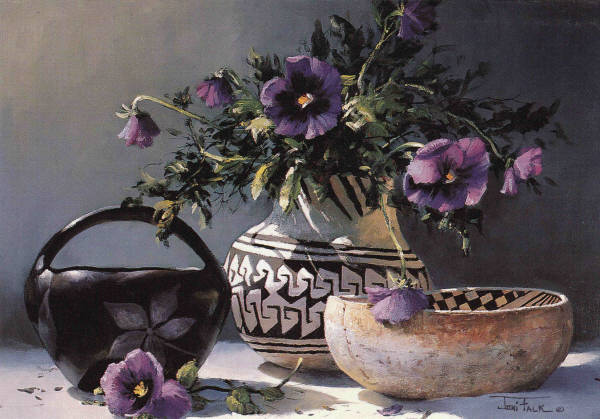 Year: 1990 Thank You Title: Pottery And Purple Pansies 0